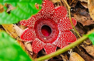 根も葉もない鮮やかな寄生花を雲南省で確認