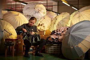 ユニークな傘を作る男性、メタリック傘にニコイチ傘、扇風機付き傘まで