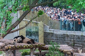 成都の大型裸眼3Dスクリーンのパンダがリニューアル